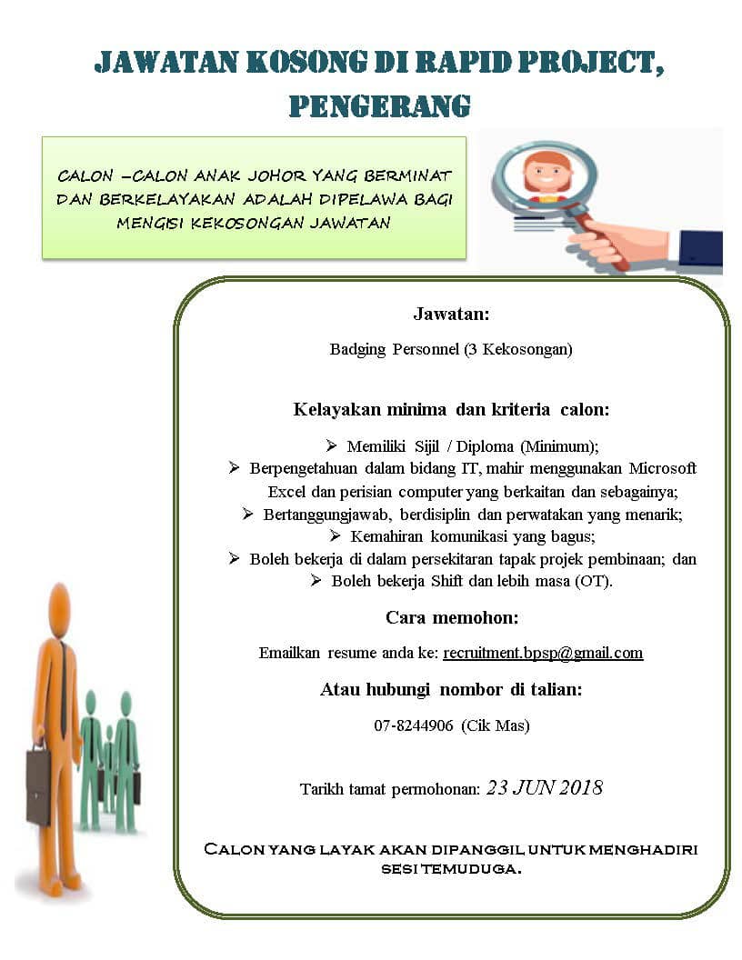Untuk maklumat lanjut serta syarat permohonan bagi setiap jawatan di Projek RAPID Petronas Pengerang JOHOR anda boleh membacanya disini link-Terima kasih kerana sudi. ListID 98755014Today 1555 Job Description 1 Shall be responsible for monitoring Johor branch. Located in Pengerang Johor the RAPID project an undertaking by PETRONAS aims at building a world-scale integrated refinery.