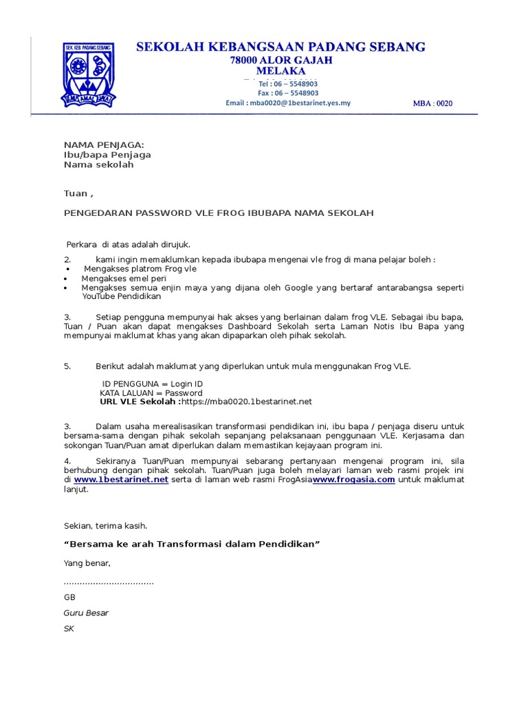 Contoh Surat Edaran Vle Parent2016 Pdf